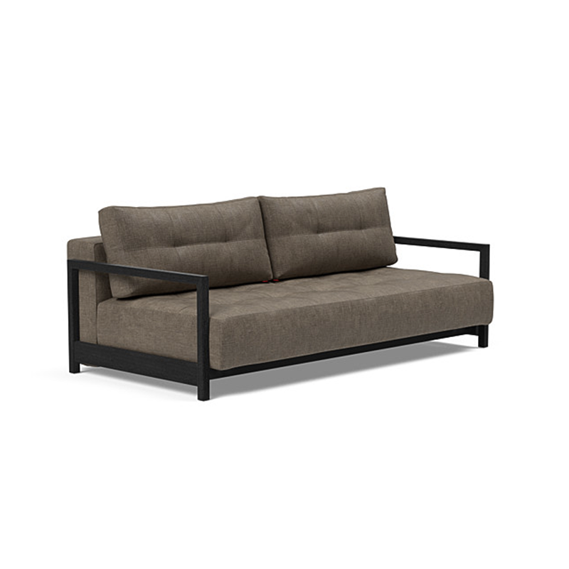 Bifrost is een ontwerp van Per Weiss voor Innovation uit 2008 en wordt een bed van 155 x 200 cm. Deze slaapbank heet officieel Bifrost Deluxe Excess Lounger, wat te maken heeft met het extra comfortabele pocketveringmatras dat erin verwerkt is. De armleuningen en pootjes zijn van zwart gebeitst hout. De rug en de zitting zijn gecapitonneerd met stiksel in rechte lijnen. Inclusief twee losse rugkussens.