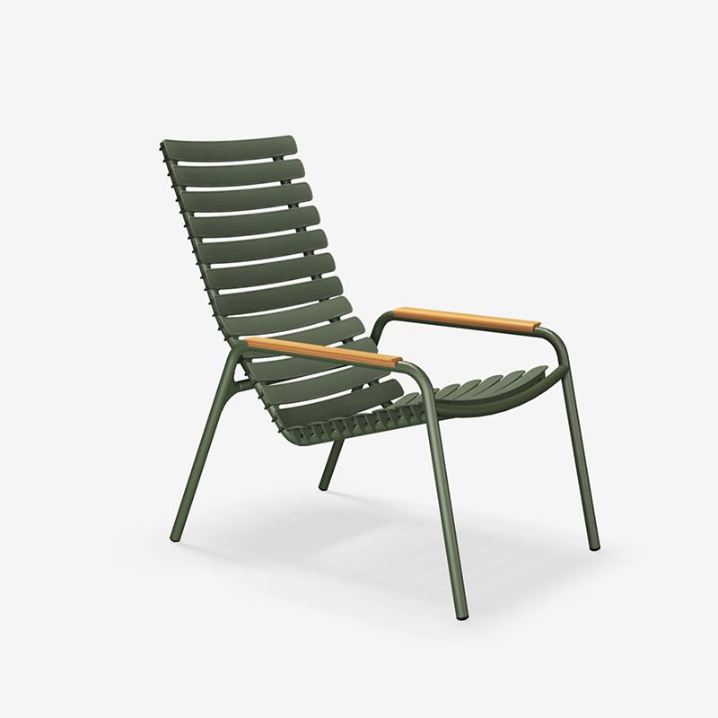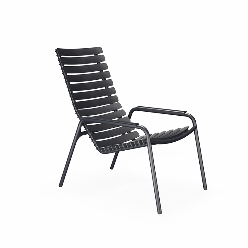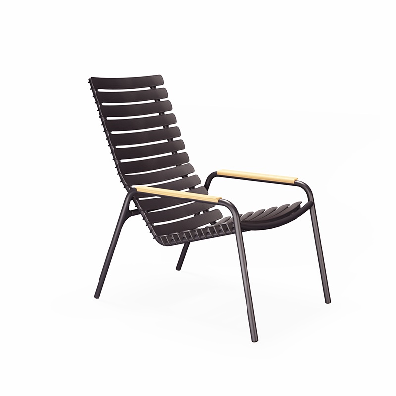 De ReClips lounge chair is licht en eenvoudig in zijn uitstraling, maar toch maken de brede lamellen hem verfijnd en speciaal. De ReClips stoel is uitermate geschikt voor buiten.